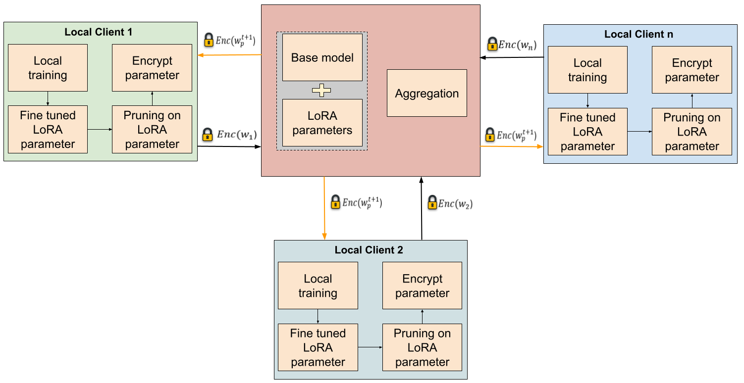 Summary: FedShield-LLM is a novel framework that enables secure and efficient federated fine-tuning of Large Language Models (LLMs) across organizations while preserving data privacy. By combining pruning with Fully Homomorphic Encryption (FHE) for Low-Rank Adaptation (LoRA) parameters, FedShield-LLM allows encrypted computation on model updates, reducing the attack surface and mitigating inference attacks like membership inference and gradient inversion. Designed for cross-silo federated environments, the framework optimizes computational and communication efficiency, making it suitable for small and medium-sized organizations.
